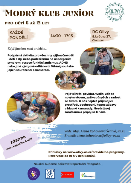 Podpůrná aktivita pro všechny výjimečné děti - děti s dg. nebo podezřením na Aspergerův syndrom, vysoce funkční autismus, ADHD nebo jiné vývojové odlišnosti. Vítáni jsou také jejich sourozenci a kamarádi.