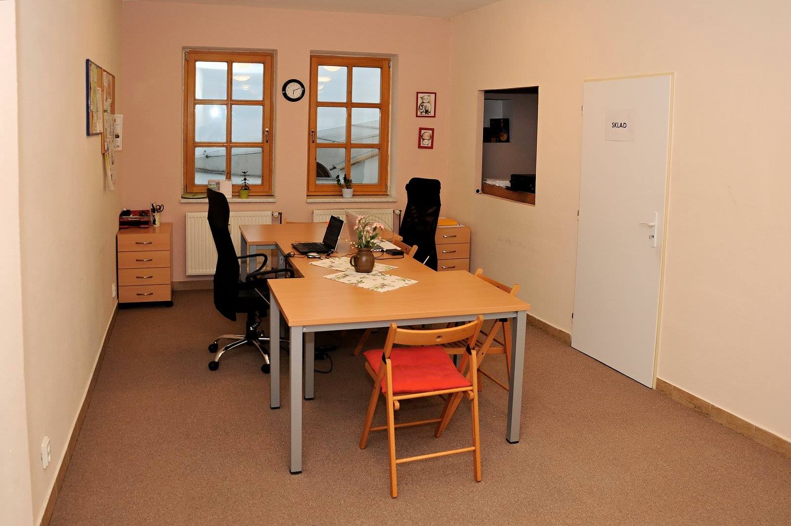 Kancelář s vybavením (notebook, tiskárna), wifi připojení.